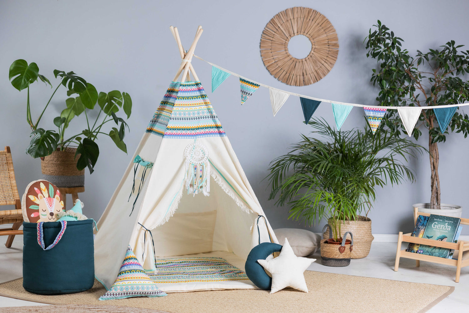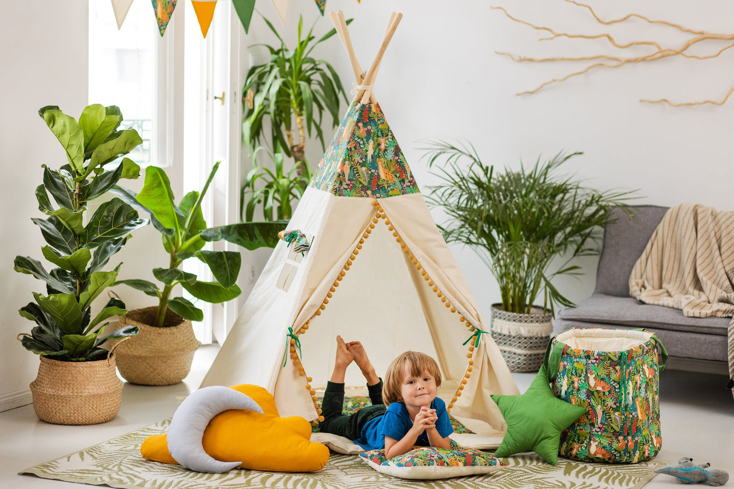 Handmade Teepee Tents for Boys with stylish design. Our boys teepee tents are the perfect birthday gift for years to come and have fun. Play Tents for Boys with Mat, Cushions & Accessories
